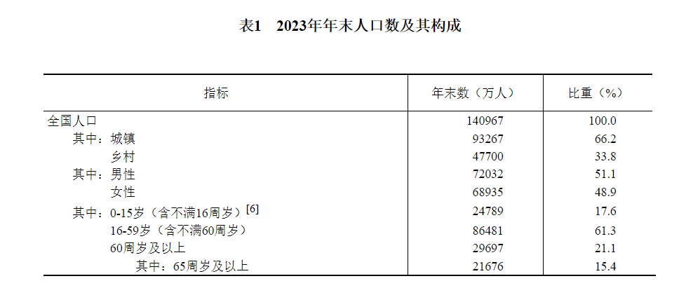 当前,我国人口发展呈现少子化、老龄化、区域人口增减分化的趋势性特征。2023年,全年出生人口902万人,总人口14.1亿人,较上年末减少208万人。