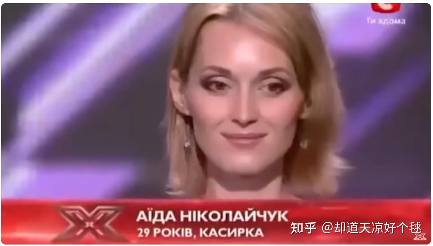 乌克兰歌手Aida Nikolaychuk生于1982年,2014年参加乌克兰的X Factor凭借天籁之音惊艳全场。她和评委的之间对白就是全程俄语,所选的也是一首俄语歌曲。只有右上角的台标和下面的字幕写的是乌克兰语。