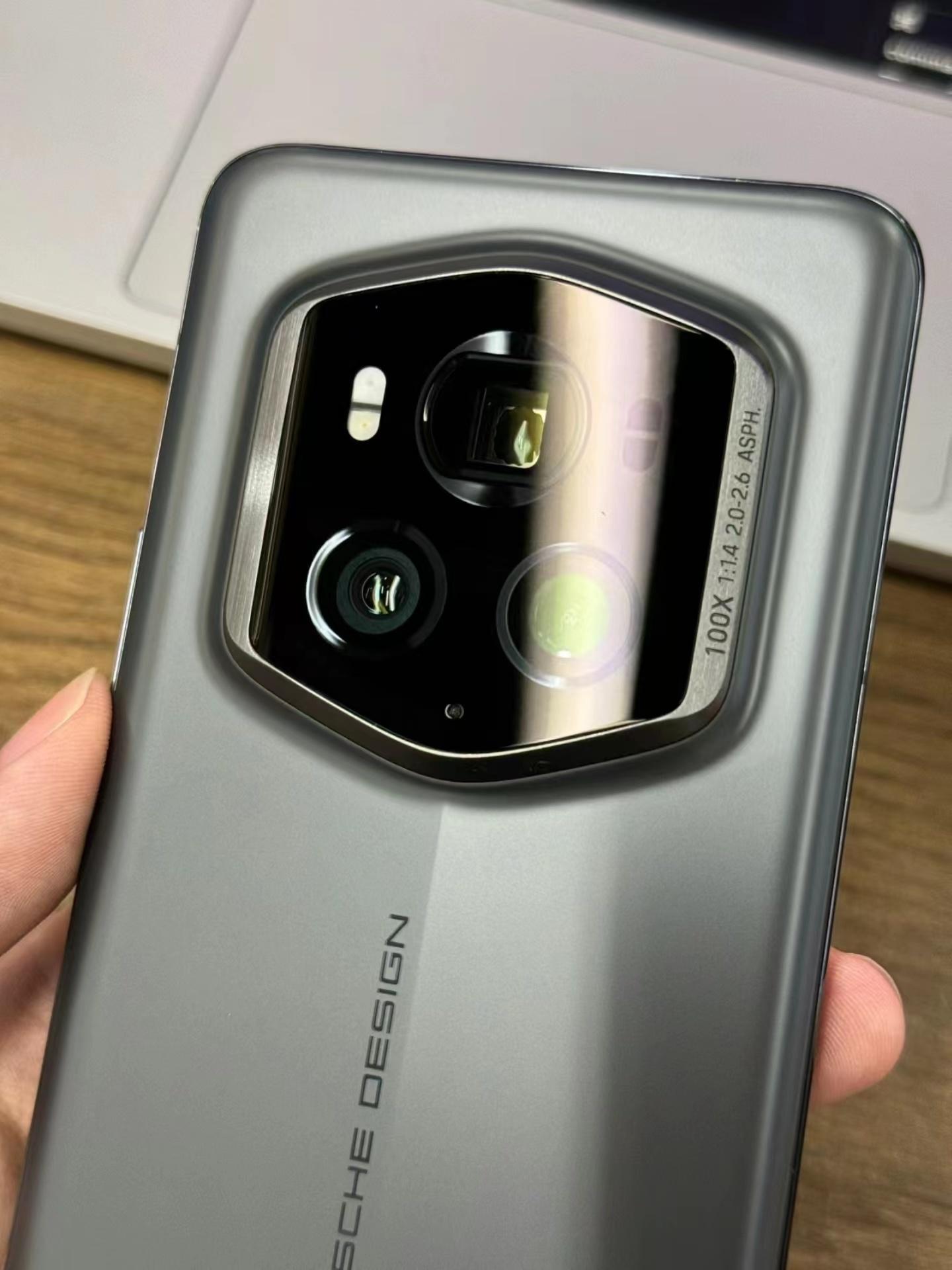 而保时捷设计的摄像模组采用的则是六边形,灵感来源于保时捷 GT3 的散热格栅,更多了一份动感,配合保时捷设计独有的冰莓粉配色,动力十足却不失质感。机身背面是镜面玻璃,中间有一条凸起的线条,来源于保时捷的飞线设计。整体来说保时捷元素满满,辨识度这块实属拿捏。