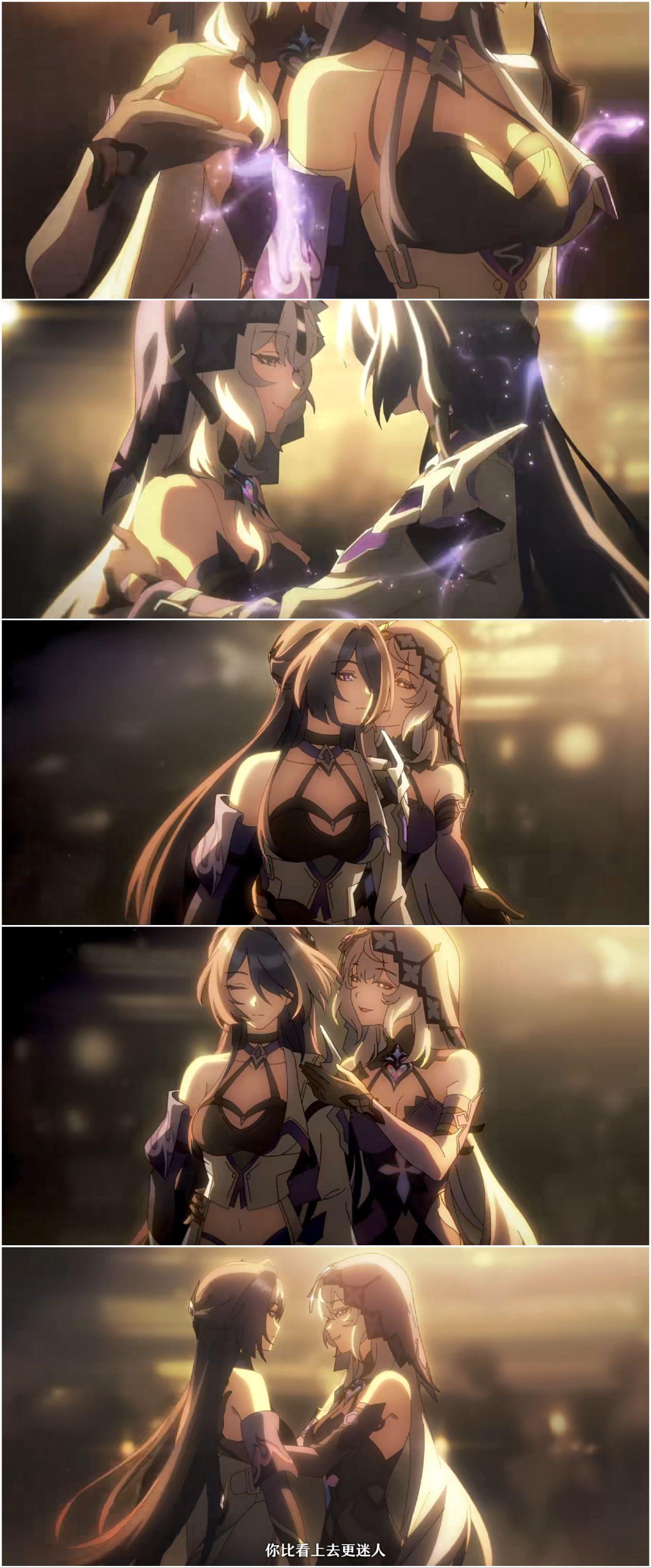 第一段,忆者对游侠发出邀约,二人在匹诺康尼的纸醉金迷的暖色灯光中翩翩起舞(姛狂喜,黑天鹅她好会!摸手了!摸胳膊!摸肩膀!在耳边说话!)
