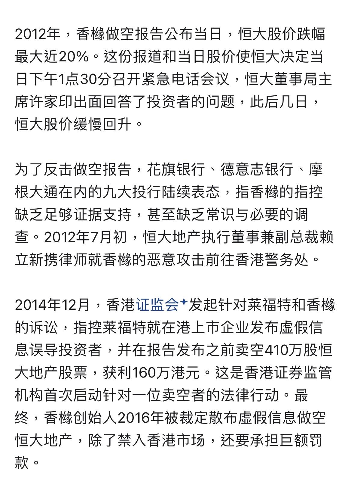 其实恒大碧桂园等房企的问题,境外早就爆出来了,当时与国内没有利益纠葛的一些美国咨询公司发表了很长的文章警示这些房企数据的问题和里面巨大的风险。