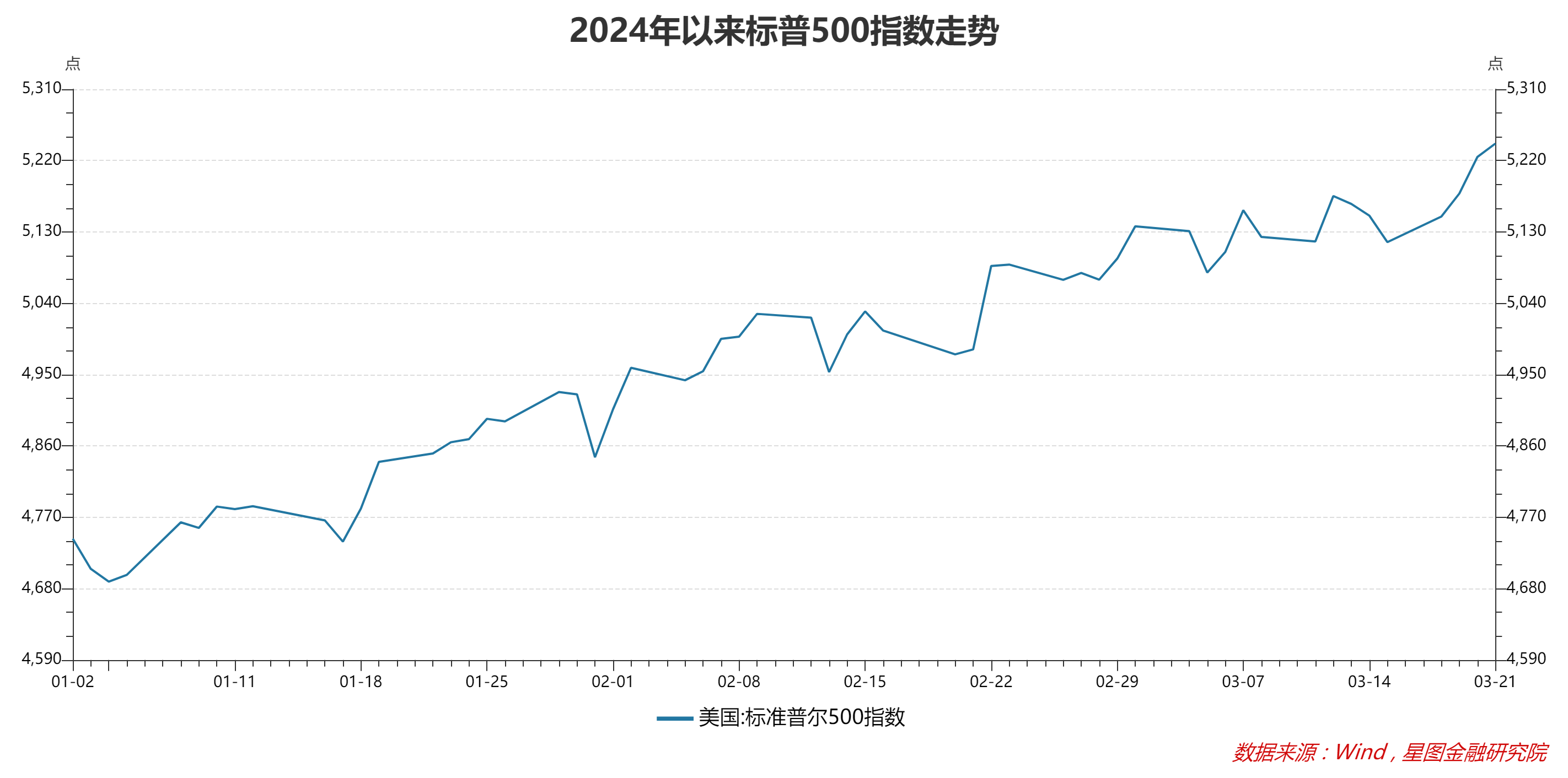 美联储3月议息会议:3月利率保持不变,符合市场预期。点阵图显示,2024年降息3次共75BP,与去年12月点阵图保持一致。鲍威尔表态,“利率或已达到峰值,在今年某个时候开始降息是合适的”,对于1月和2月通胀超预期,认为可能是季节性调整因素所致,是通胀回落过程中的波折,但通胀回落的趋势没有改变。市场普遍预期6月为首次降息时点。