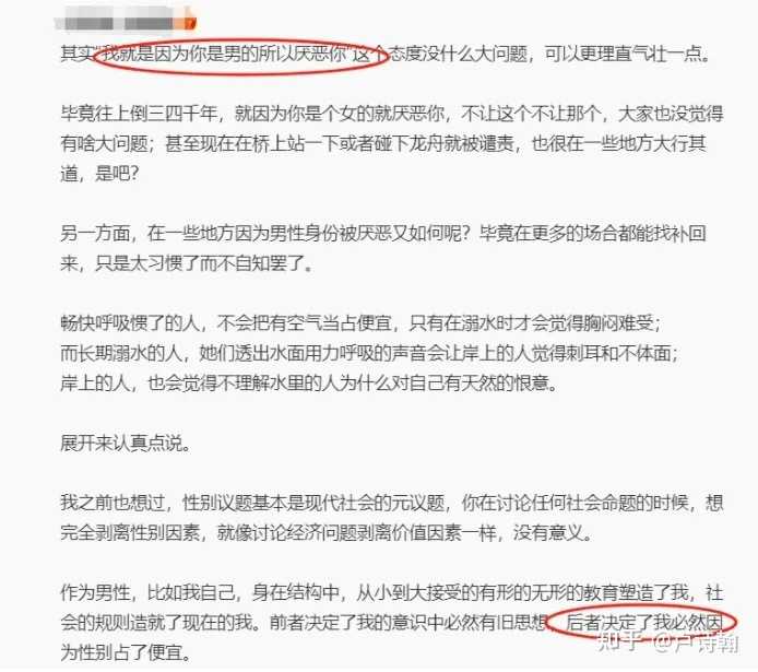 身处在那个现场,看到“个人感知中的非性别针对”与“异性围绕性别问题的激烈反应”,二者在同一场域之中的对撞,我可以从自己或多或少的“钝感”甚至“不解”中充分认知到:在自我的无意识之中,“性别化的概念与姿态”其实已经落到了客观结果的呈现中。