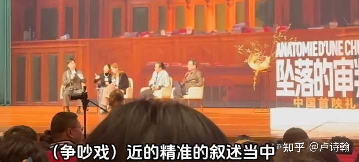 点开,明白了究竟,去年的金棕榈大片《坠落的审判》在北大首映。映后交流,导演来了,深受年轻人爱戴的电影专家戴锦华老师来了,法国文学研究和翻译强者董强老师来了。主持就是陈铭老师。四个人坐到台上,彬彬有礼。