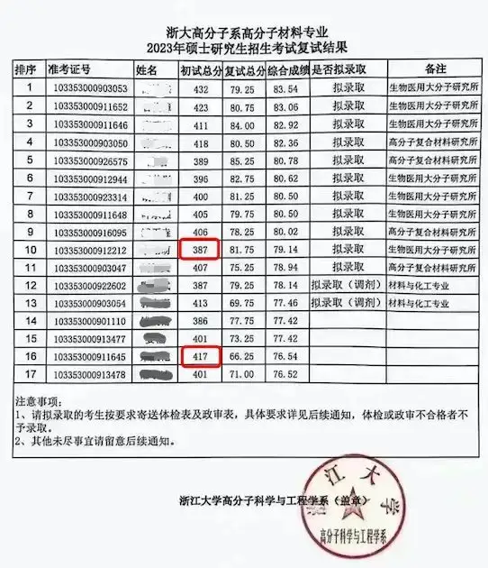 就像浙大的情况,好几个初试400+的被刷,好几个低于400的录取,根本原因就是两者的实际初试分数差距很小,面试好一点就赢了。