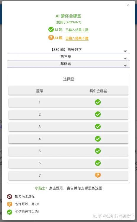 每个专题10-12小时等级2满,660,880 “AI 猜你会哪些"就会标出你已经掌握了的基础题。(1800的基础篇,等级2满就可以全面掌握,所以没有 AI 猜)