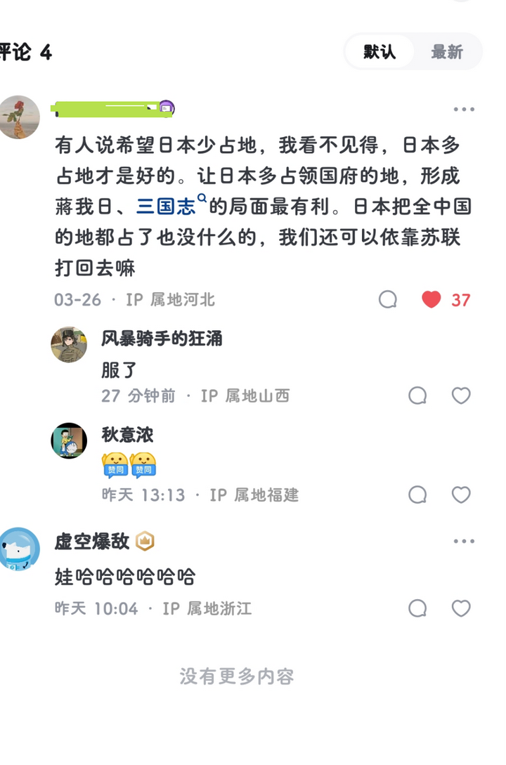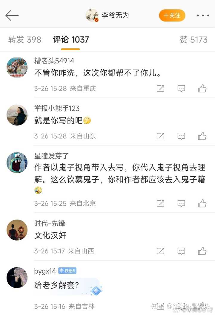 这篇短短的评论其实很简单,就是一名狗汉奸捏造了一件子虚乌有的事情,借以美化侵华战争、污蔑抗日军民,但是网友们并不买账,围住狗汉奸一顿打,但没想到老胡的沟子早已不保,恩主不悦等于老胡不悦,骂了老胡的恩主等于糟践了老胡的沟子。