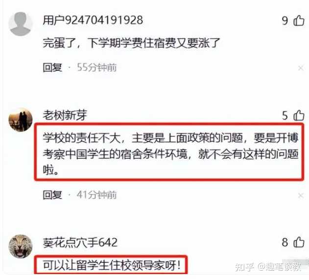 首先是留学生宿舍条件本就优越,没有新建的必要,而学校其他国内学生反倒急需改善住宿环境;