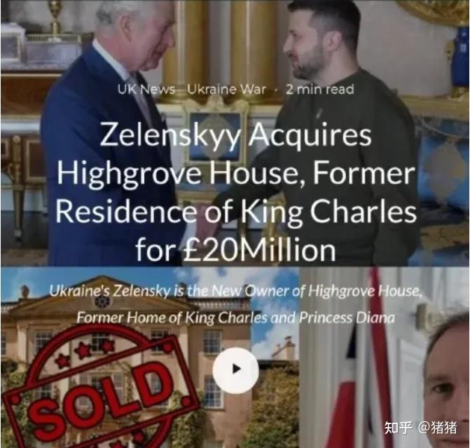 英媒报道,近日,泽连斯基花费2000万英镑(人民币1.8亿+),从英国查理三世手中买下海格罗夫府。
