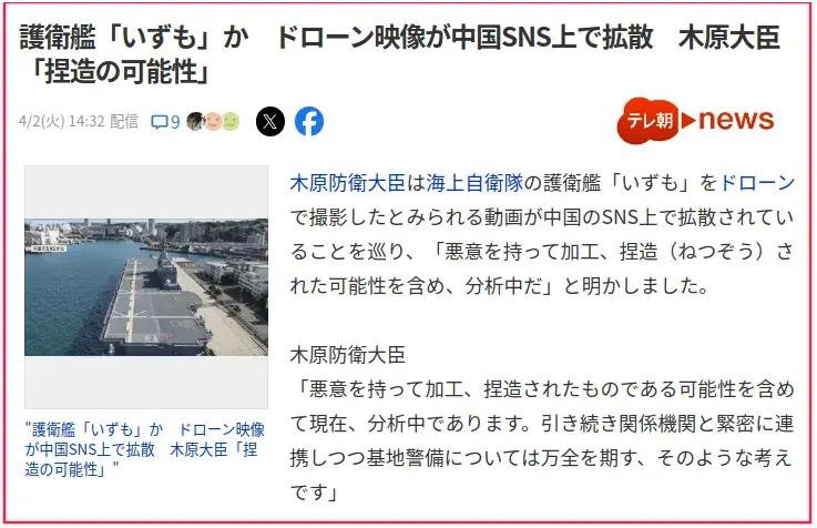 日本“出云”号航母被中国无人机“突袭”,这事情实在过于吸引眼球。在中国网络媒体上发酵两三天后,日本人坐不住了。从4月1日开始,日本各大媒体纷纷报道。