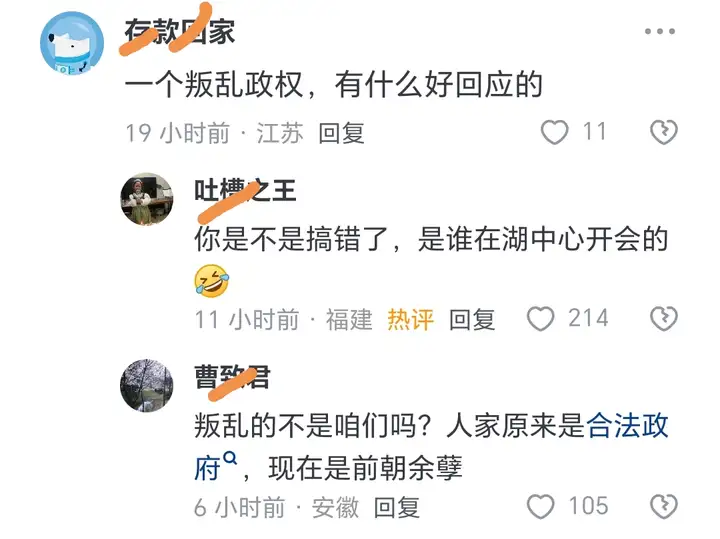 竟然还有人不承认对岸是叛乱政权?还前朝余孽?