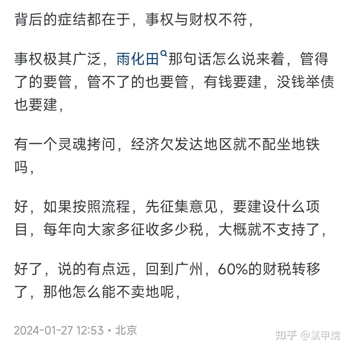 我在一月份的回答提过,广州的财税留成比例非常低,大概只有40%左右,即便不跟直辖市,计划单列市比,在全国所有省会城市中也算是排名靠后的,