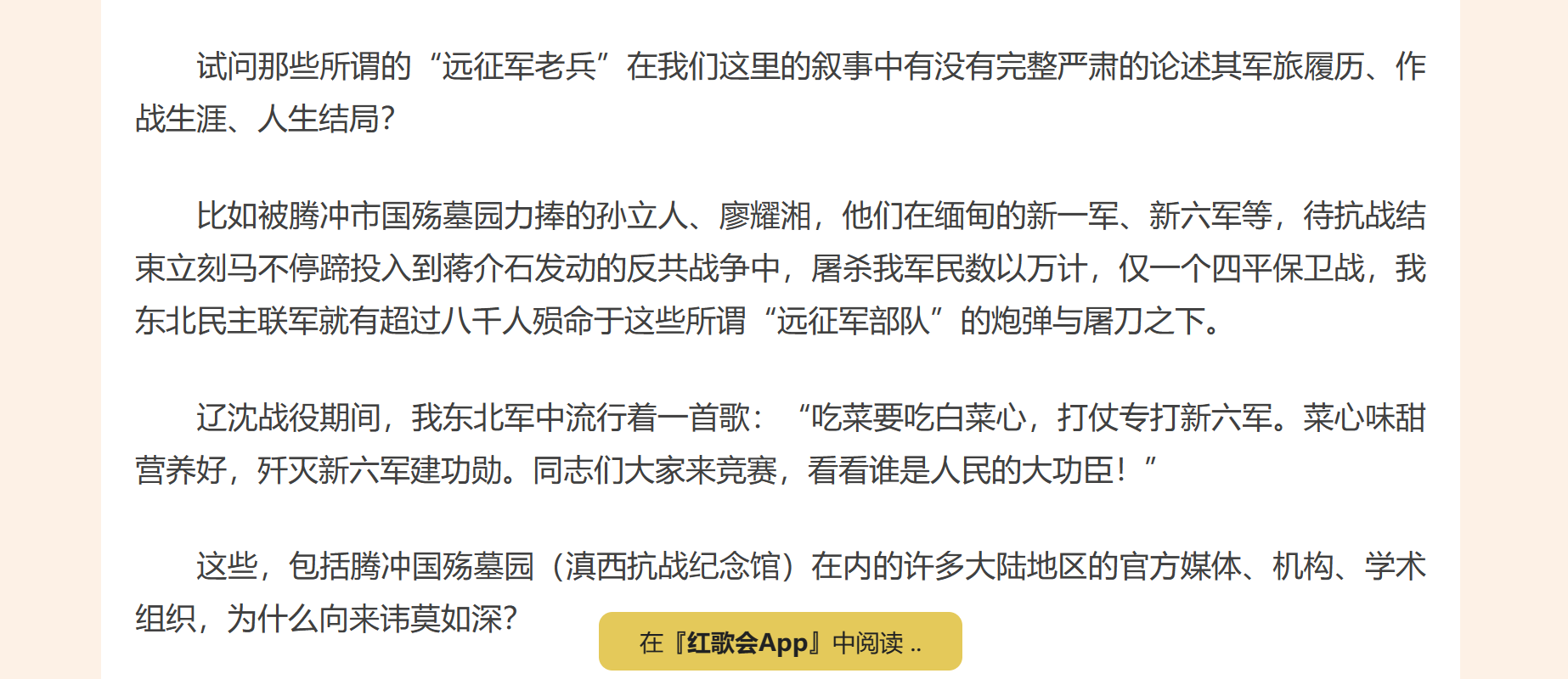 我同情包括“中国远征军”在内的国军普通士兵的牺牲,但如果不能以阶级视角与历史唯物主义的叙事出发、分析这些国民党军人其一生经历,那么必然会陷入政治失真的虚无主义错乱。