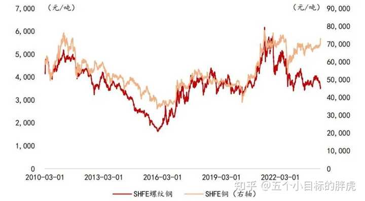 咱就不拿金银的价格走势对比了,有点欺负人,就拿铜的价格与黑色系的代表——钢进行对比,差别还是非常明显的。这反映了中国和全球其他地区的宏观周期的非同步。