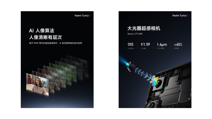 虽然这是一款主打性能的手机,但拍照对日常体验也非常重要。红米Turbo3上,竟然直接用上了索尼LYT-600,其具有f/1.59的大光圈,有OIS光学防抖,日常也能提供很不错的拍摄体验。