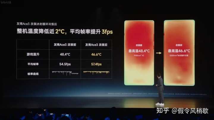 如何证明这散热强呢?直接对比容易被说变量没控制好,红米想了一个绝佳的控制变量的办法,把冰封循环冷泵装到了友商的手机上。结果发现散热效果提升,手机温度降低1.8℃,游戏帧率提升3帧。这实在太秀了!