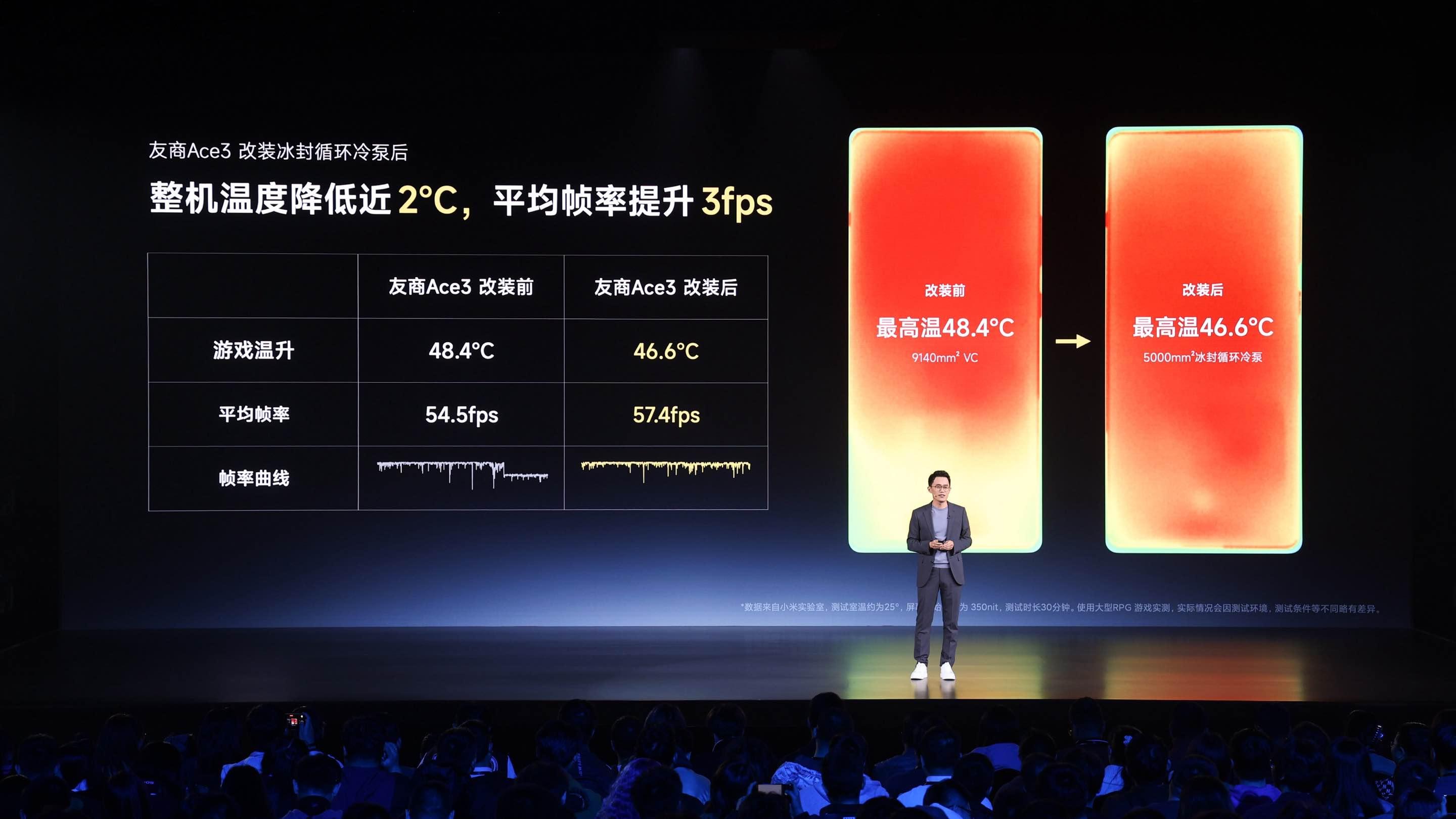最终红米的全新散热系统,让ace3温度低了2℃,游戏平均帧率高了3帧