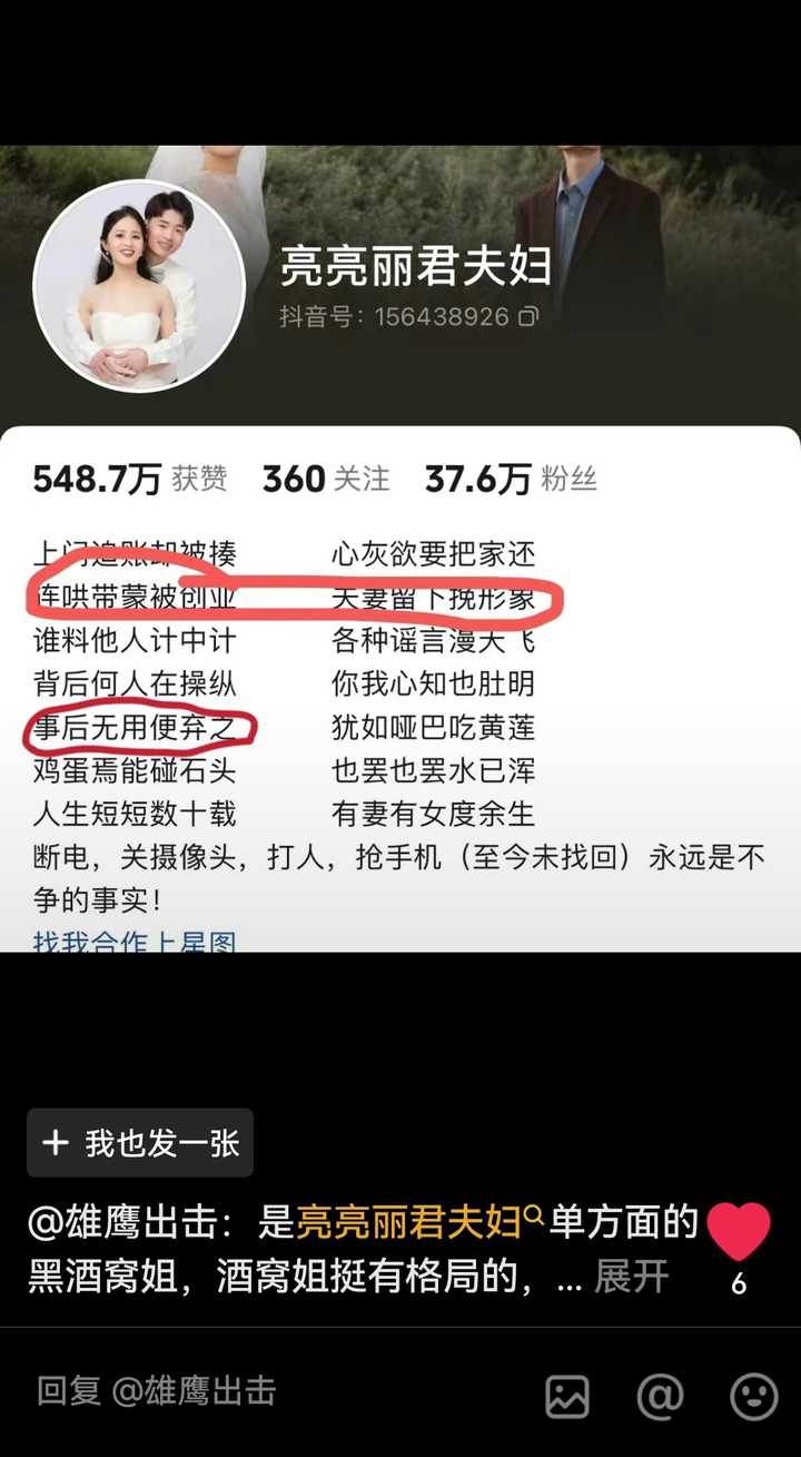 亮亮丽君夫妇在郑州创业时,黑粉非常多。这些黑粉买亮亮丽君带的货,然后再退货打差评,干扰了亮亮丽君夫妇的正常商业活动。亮亮丽君夫妇很难变现流量,他们的热度也在逐渐消退。于是乎,背后的势力就放弃了与他们的合作。亮亮丽君夫妇只能回老家了。
