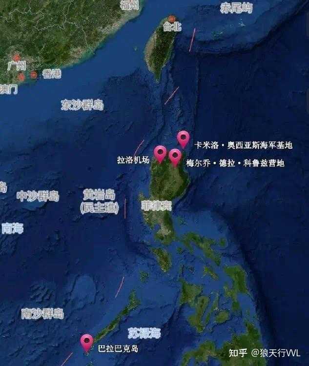 美国南海军演 首先是台湾方向,卡加延省的卡米洛·奥西亚斯海军基地和拉洛机场距台湾仅约400公里。而美国即将建设港口的巴坦群岛,北隔巴士海峡与台湾台东县兰屿相望,距离台湾本岛142公里,距离台湾离岛兰屿99公里,比距离吕宋岛200多公里还要近。要知道,我们台湾海峡平均宽度是180公里,最窄处(新竹市与福建平潭岛之间)也有126公里,一旦美国在巴坦群岛建立军事基地,美军武装介入台湾岛比我们跨海登陆还要方便。