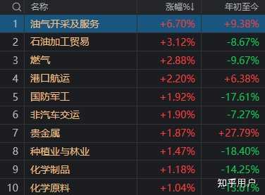 今天表现比较好的行业,石油,航天航空,水务,供气供热,化纤,海工装备,钢铁,化工等