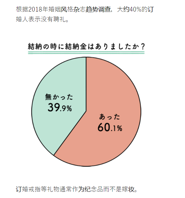 其次,日本由于全面学习中国,所以日本的婚礼中,最重要的并不是这笔钱,而是“结纳品”,来源于中国古代的“纳征”。
