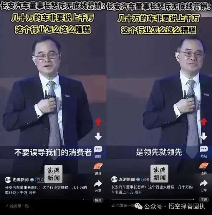 “几万块几十万车非得说几百万、千万内最好。希望合作伙伴有基本的价值观,不要误导消费者,是领先就领先。”
