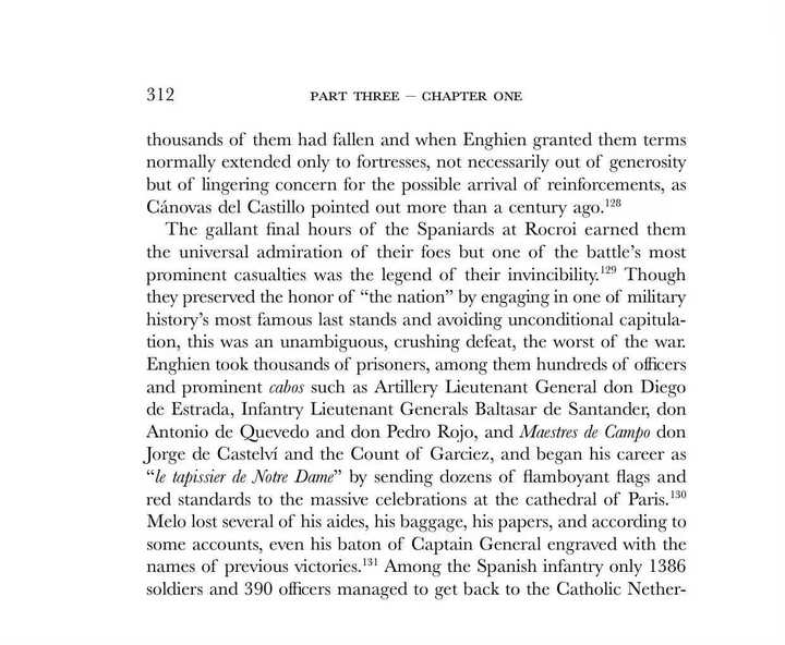 反观1643年的法西两国罗克鲁瓦战役,2.7万士兵并配备有30门正版红夷炮的西班牙军队,在骑兵被击溃后,面对法国步骑兵的轮番突击以及火炮的轰炸,孤立无援下坚持斗争两小时,阵亡数千,被俘数千,仅剩主帅德梅洛和一千多人逃回,虽败犹荣,彰显英雄气概。
