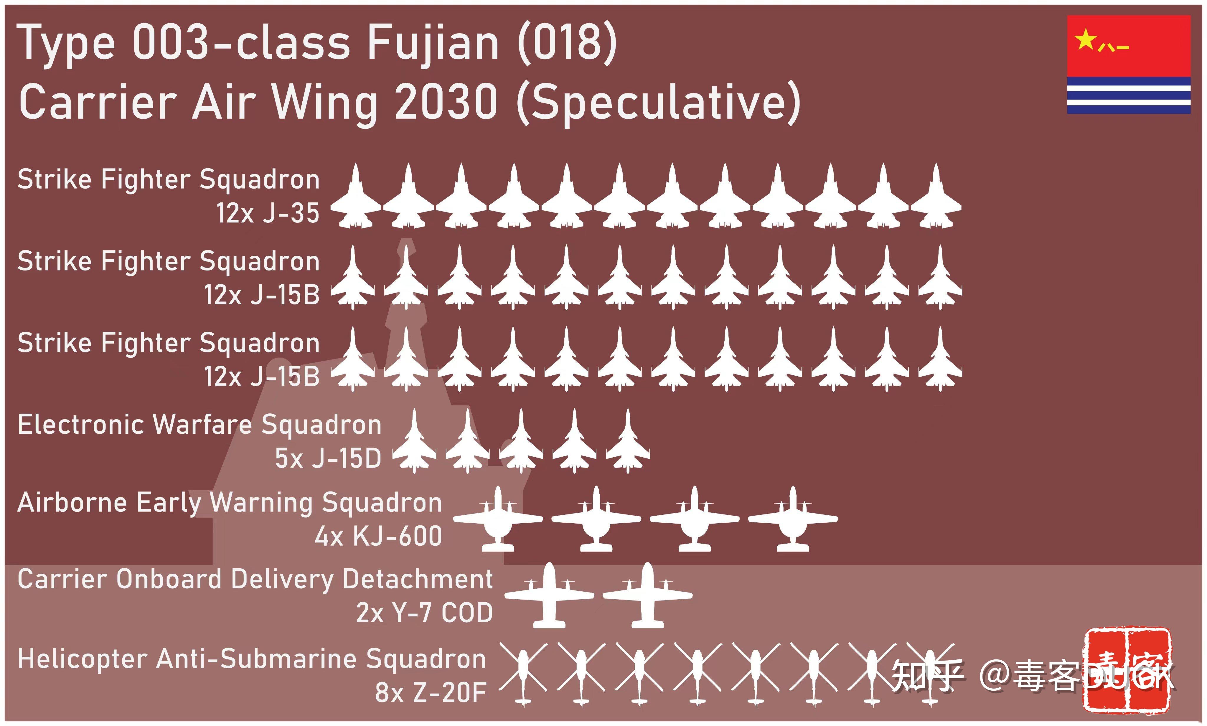 就福建舰航母的载机量来说,未来其大概率将会采取冷战中美国海军高低搭配的模式,即对标F14和F18采取歼-15和歼-35混编,按照美国海军协会的预估,福建舰预计将搭载12架歼-35、24架弹射型歼-15T、4架空警-600、4架歼-15电子战型和8架直-20,整体数量稍逊于美国福特级航母舰载机编队,但质量上可能还略微领先于美国海军!