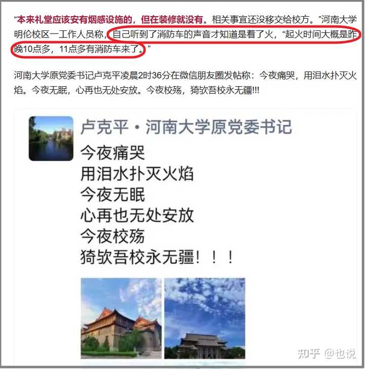 说明:他们连“稍微”都没能做到,或者说压根没人管。上头都是些专家,我这混工地多年的土木狗都能看出来不对劲,更何况专家大咖们了?我等土木狗们干的项目动不动上亿元的造价,占地几百上千亩的大盘也不少,要都像河大这样玩,土木这专业早就没人敢学了,还用等到今天苦哈哈地看着房地产崩盘?可以肯定一点:河大在安全消防管理上存在巨大漏洞,必须要有人出来负责。