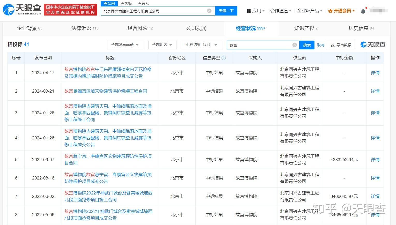 故宫博物院的慈宁宫、寿康宫、神武门等多个修缮项目,都是这家公司中标修缮的。