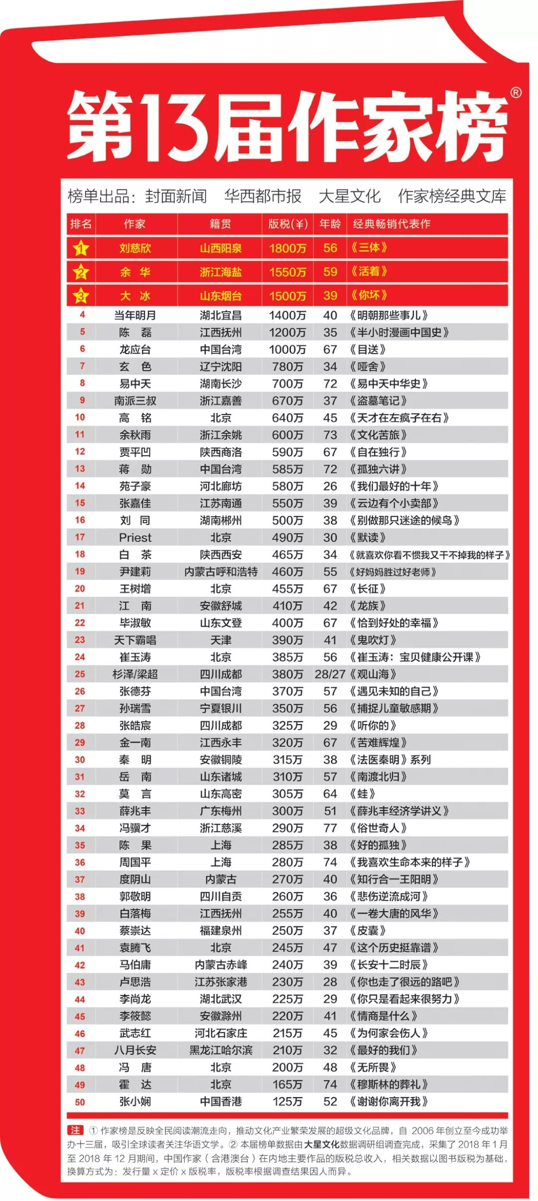 最后一届中国作家富豪榜,谁被高估了呢?