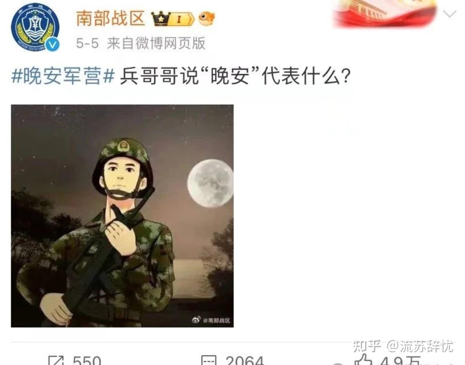 南部战区这个号经常发晚安,去他主页稍微往下翻翻就能看到一堆。