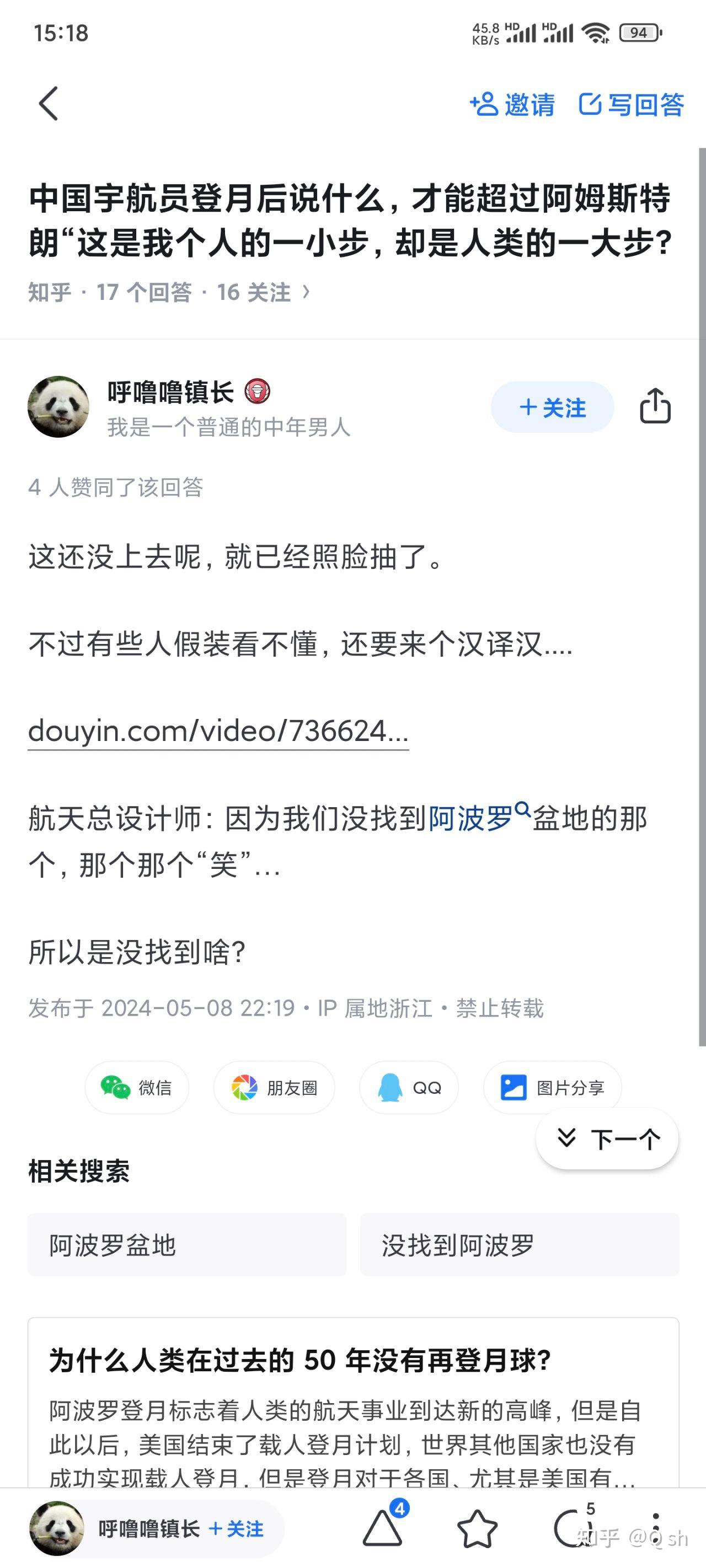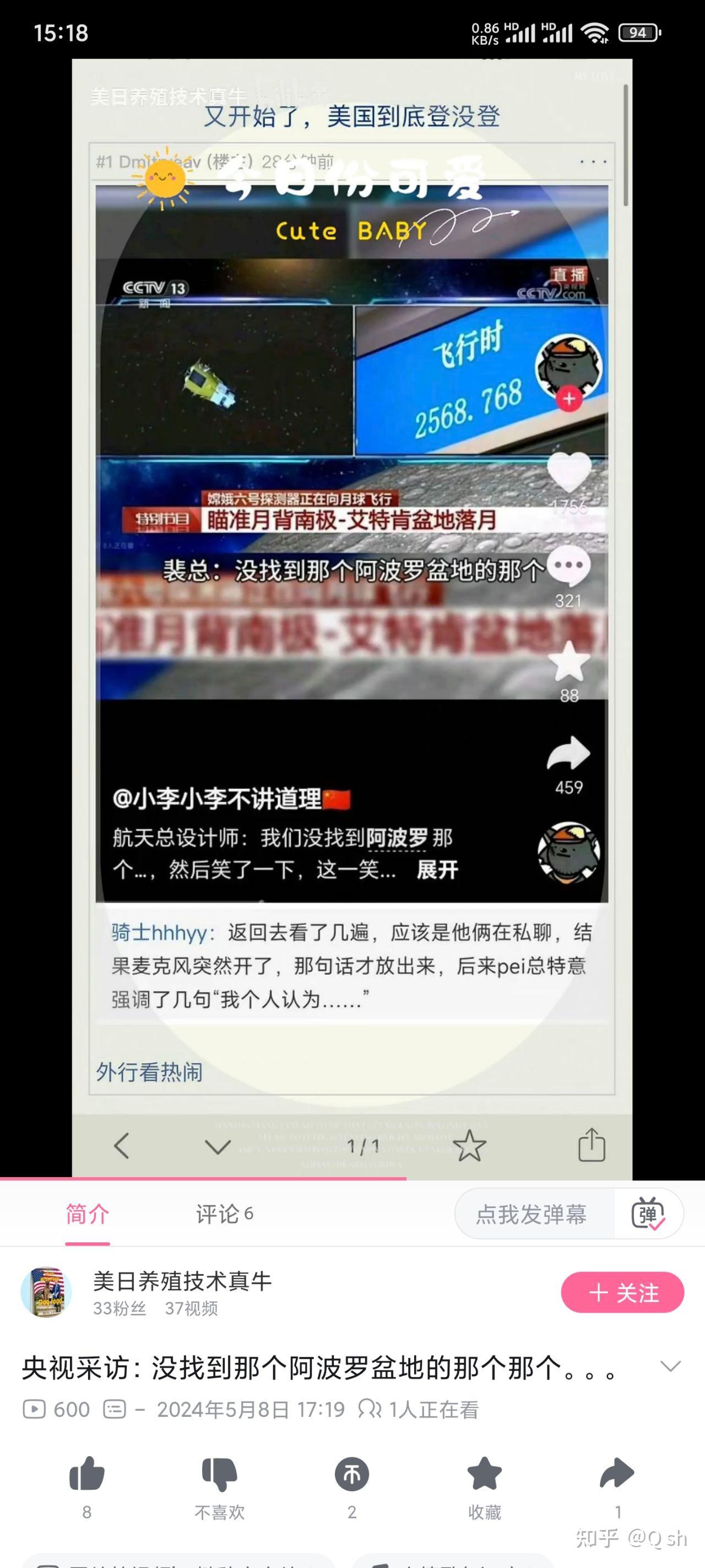 我看了下X音视频下面的评论,再次证明x音简直是大型科盲阴谋论信徒抱团取暖现场,一千多个回复99.9%以上不知道阿波罗盆地是月球上的地名,不是阿波罗登月地点,登月阴谋论患者连阿波罗盆地是啥都不知道就出来造谣,这不仅仅是无知,是XX的沦丧还是XX的扭曲大家自己判断。