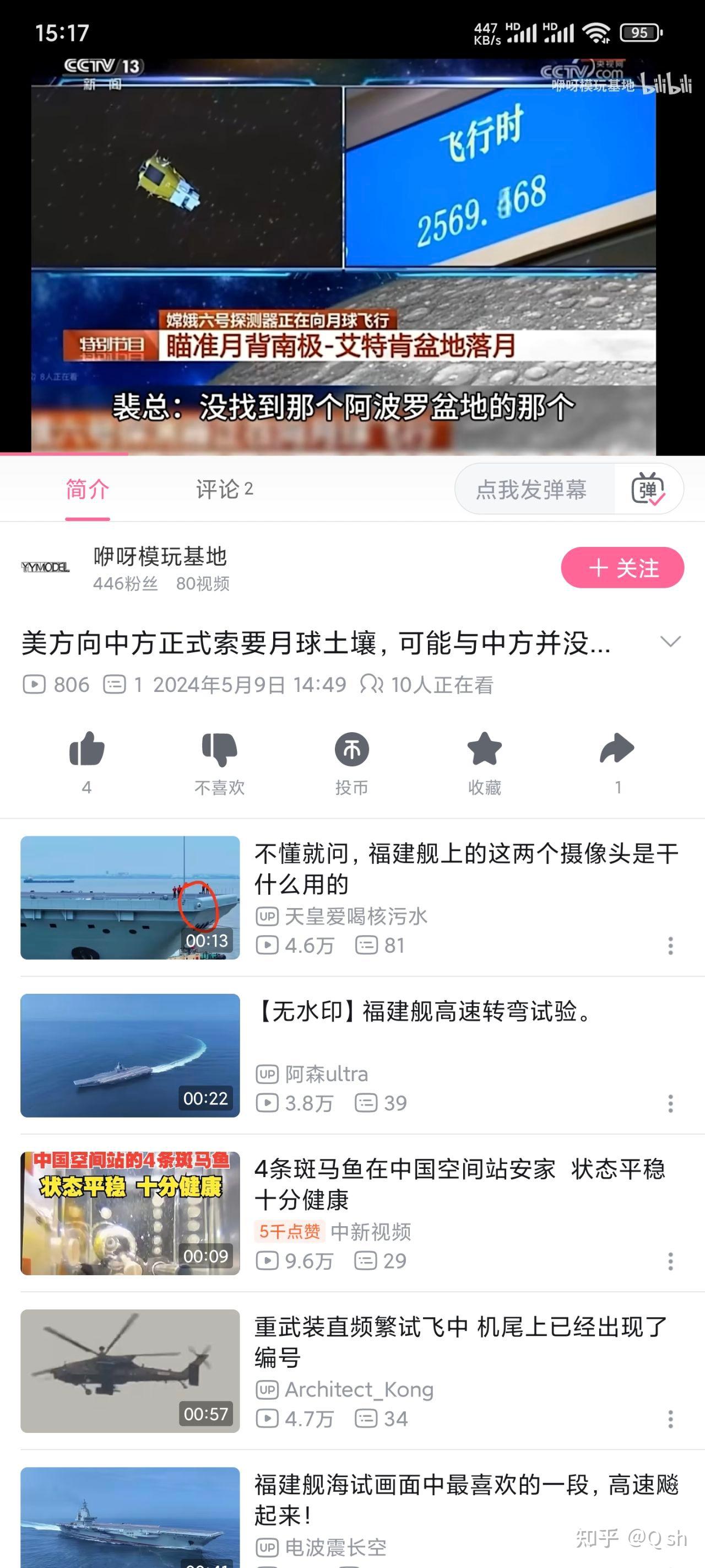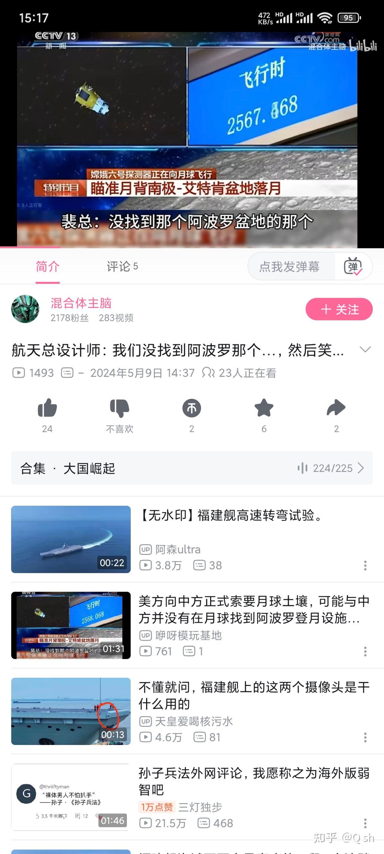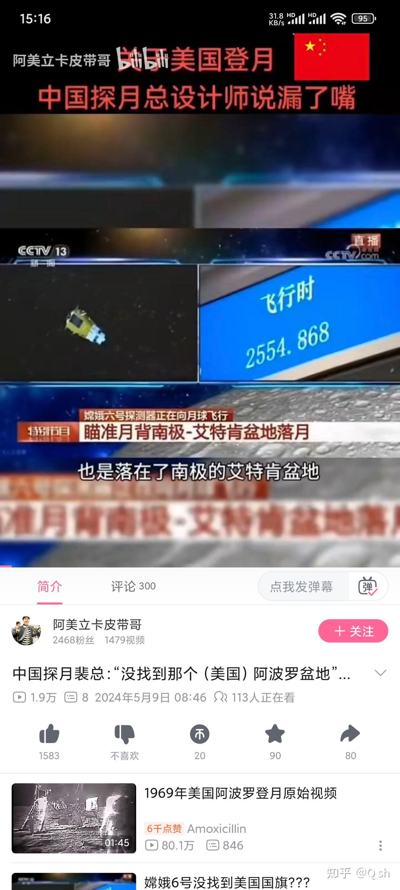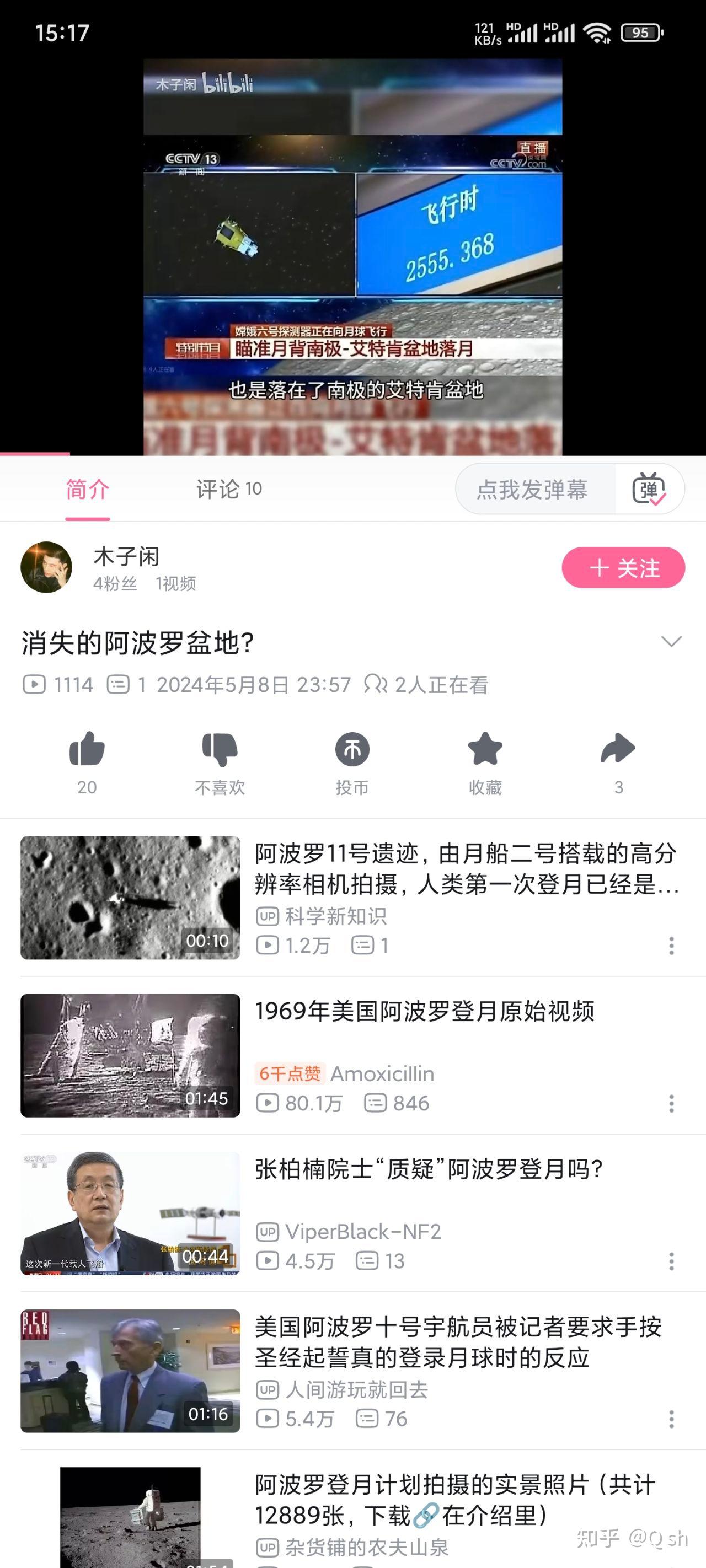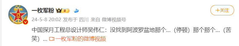 ①节目播出时间为20240503,视频时间为1:40:00左右,时间反推约为当日北京时间18:10左右。即点火后43分钟前后。实际上距离微博(最早疑似@司马平邦 5月8日18时余)与抖音(只能找到5月9日的如@☭凌宇☭ 等,但是考虑到@司马平邦 为转载抖音视频应该存在更早的来源)的认为这个代表了没有找到阿波罗登月地点相距数日。
