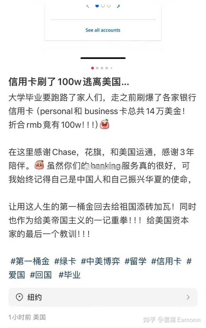 自己心灵港湾被薅,亚伯拉罕法圣坐不住了呗,本来内条「 中国留学生刷爆 100 万信用卡回国 」的原博文也不确定是否属实,最早甚至被其它留学生怀疑过是个神神打着振兴华夏名义,日常发在外网阴阳怪气而已。