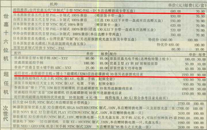 你比如 1996 年,MD 兼容机价格 680.00 元,你也别管它是不是原装,能玩。但是,同时期 SFC 日版价格 930.00 元。