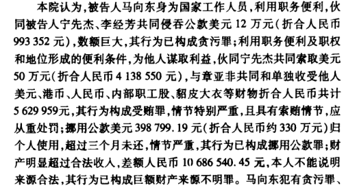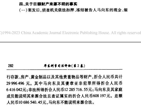 判决书提到马向东夫妇财产2900万,其中犯罪所得640多万,非法所得1200万,合法收入60万,还有1000万巨额财产来源不明。