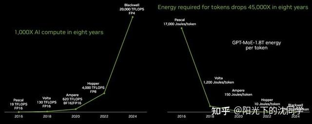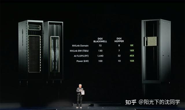 Blackwell GPU的训练性能是上一代Hopper GPU的4倍,推理性能是30倍,能源效率约25倍