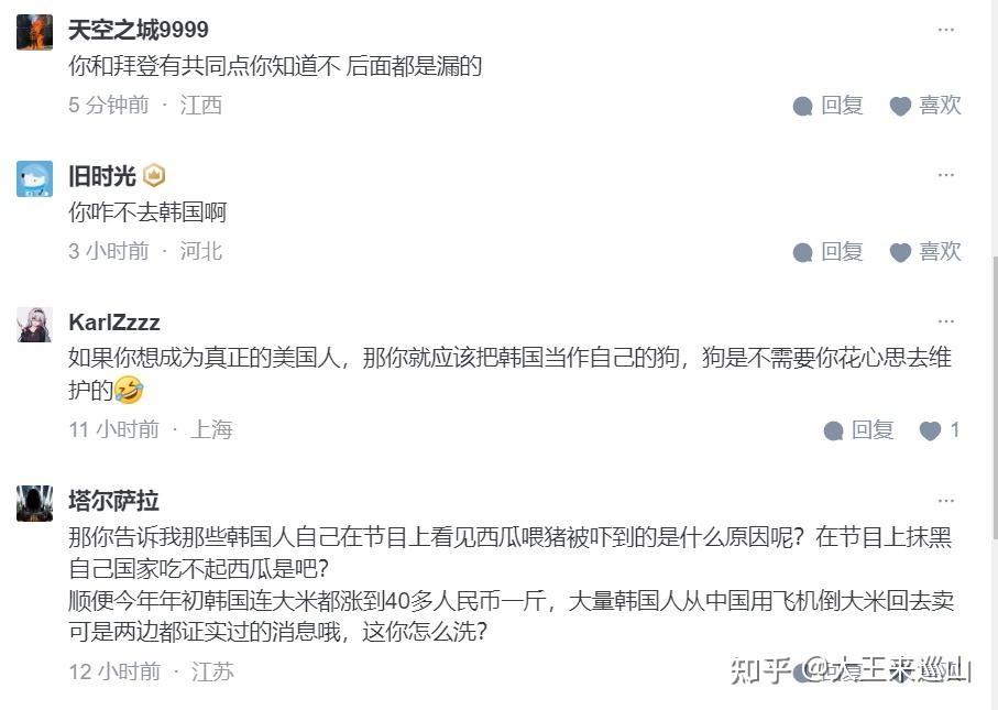 底下的回复,总结起来就是:“你说韩国人吃得起肉,你就是罕见,就是卖国。”