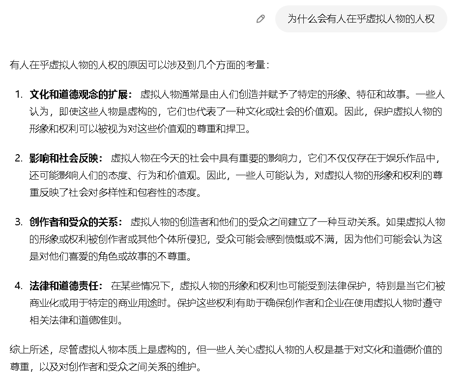 但是他提到的作画违法,违反二创内容违反公序良俗就属于碰都不能碰的滑梯了。其实道理也很简单,人创造出的角色本身就是物,是没有人权的,也不是人。