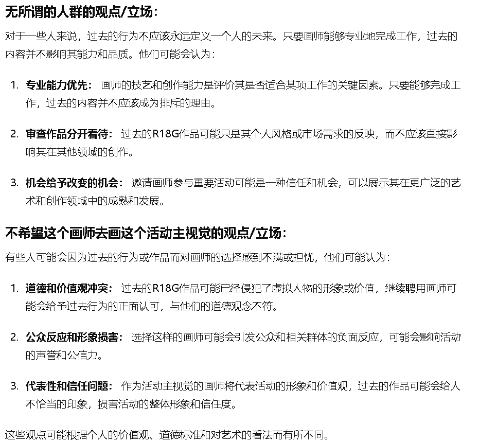 如果他的论点单单是因为画师划过角色都r18g图,不够尊重角色,不应该接这笔商单。也不是不能认可。