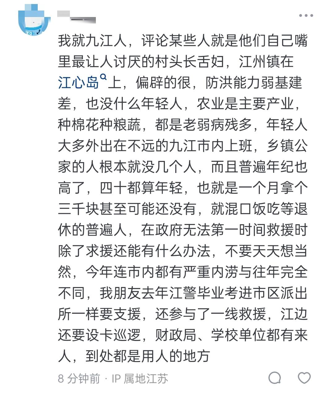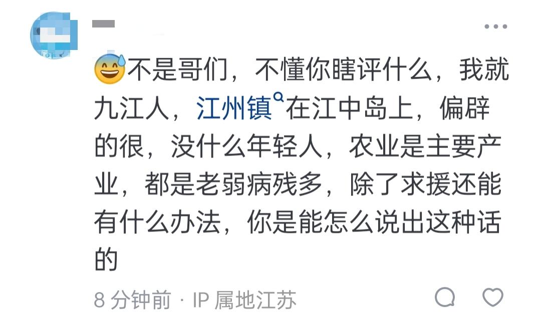 居然还好意思说“除了求援还能有什么办法”,不是老乡,有些网友还有你们那IP的人均提到那边年年这么发洪水,作为本地人你们就是年年这么受着,平时是一点自救手段和准备都没有吗?最起码看下天气预报吧,看看是不是到了一年一度的“洪水撤离期”来了没有吧?哪怕只是一定程度上减少点损失、提高一点点自保能力呢?