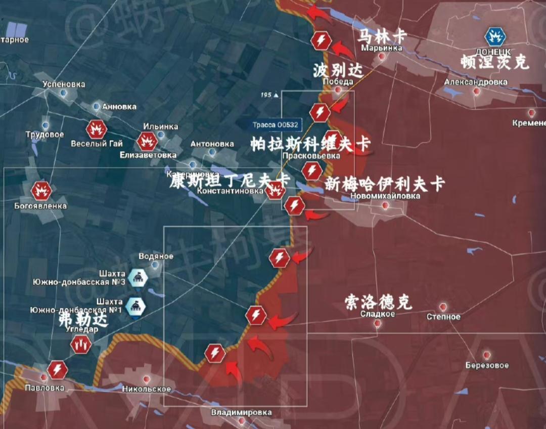 顿涅茨克市区旁白的马林卡与新梅哈伊利夫卡方向,俄军的推进更是缓慢。