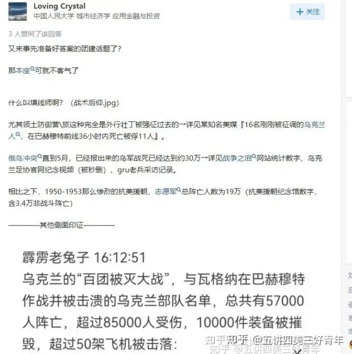 最后不要把理论动员极值代入到俄乌战场,动不动就拿二战说事,可以动员500万云云,好像乌克兰人就是星际里的马鹿,点了就能造出来,出来了就能按你指令打生打死一样。