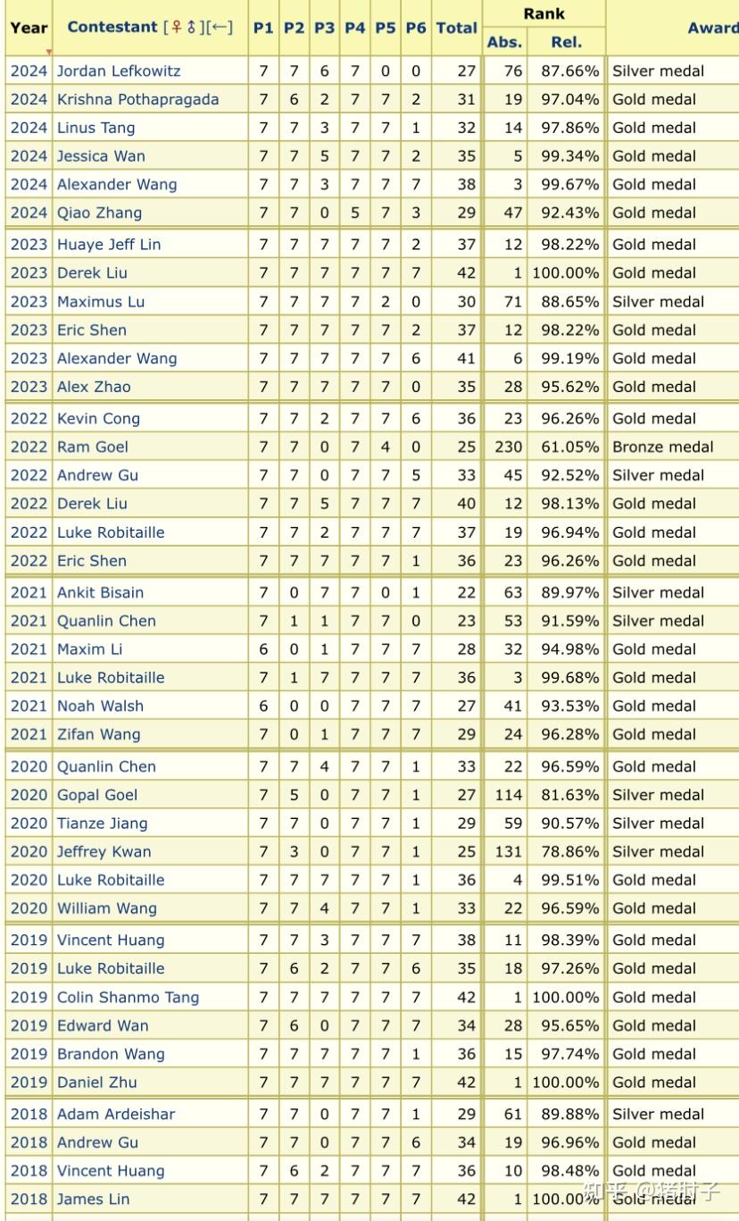 其实还可以看看国际物理奥赛,另一个智商含金量堪比数学的奥赛。以下是美国队最近几年的组成和成绩