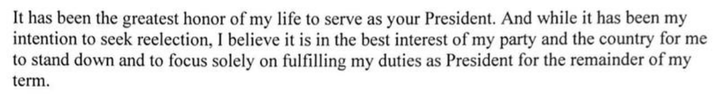 我在另一个回答里提到过,现任总统基本上必须追求连任。如果现任总统如果不追求连任,大概率是对自己的政绩不满意没信心。而临阵换将无论如何都会军心涣散。哪怕换的是副总统。你自己都不信你自己,我们为什么要信你的副手呢?所以我对于拜登要不要退,也一直很纠结。现在复盘看来,拜登最大化了退选能力带来的正面效应,同时几乎避免了所有可能的负面效应。