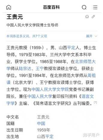 查了一下王贵元教授的资料,算是学术圈大佬了。人大复印资料主编,1959年出生,今年65岁,这最起码都是当爷爷的人了