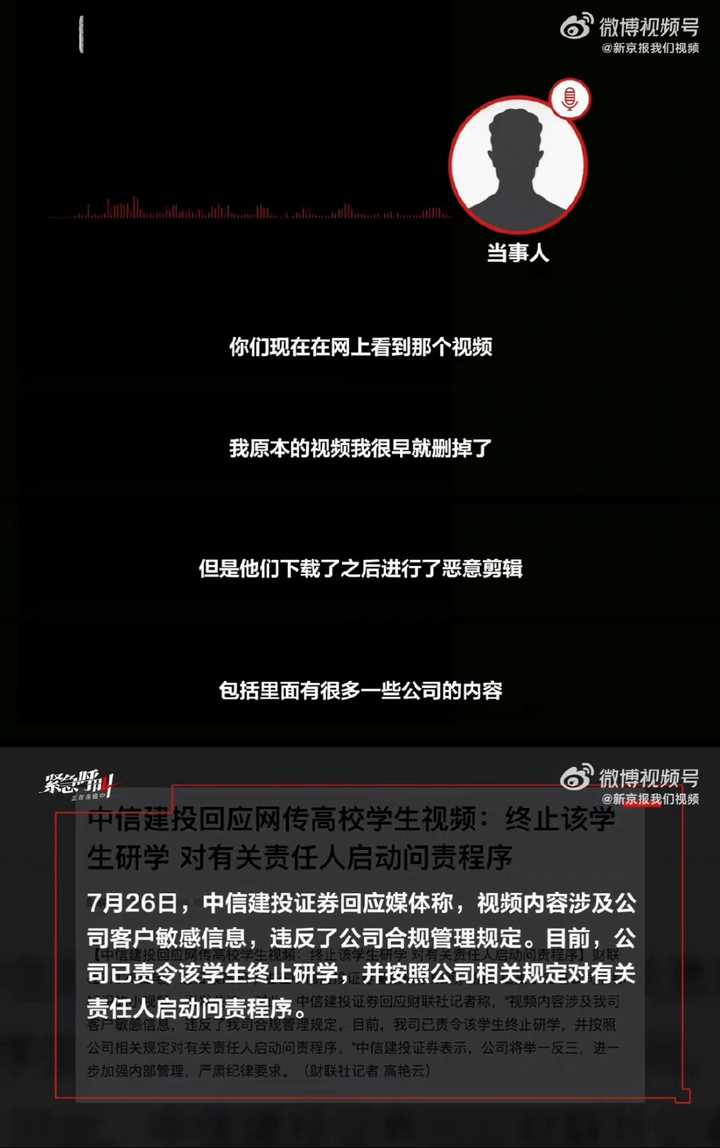 下架视频后,少爷还接受了新京报的媒体采访,把锅完完整整的甩回给了中信建投