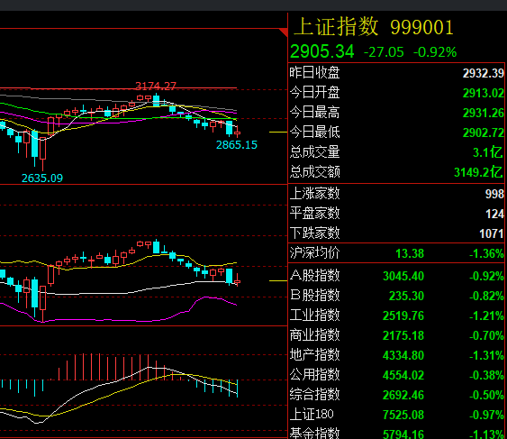 大级别上,沪指还有下探2805,甚至极端可见2750,但这种可能性较小,注意布局节奏。一旦开启反弹,第一目标位是回补3152缺口,并有望冲击3200。
