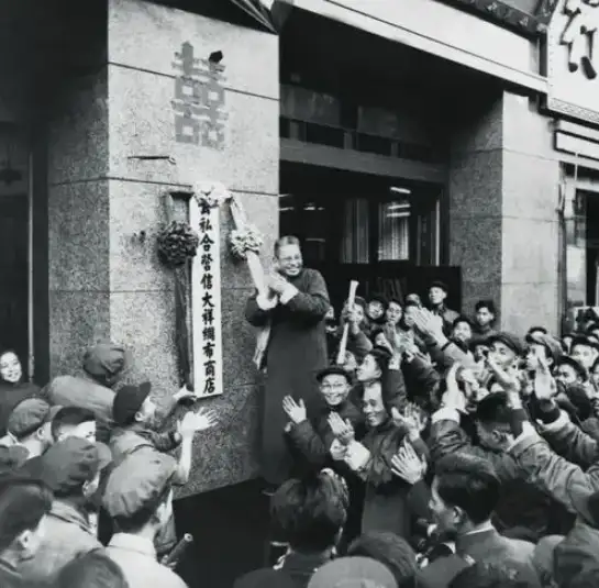 1956年公私合营的照片,那个站得高穿长衫的应该就是企业主吧,你看他还在笑呢,在鼓掌呢?